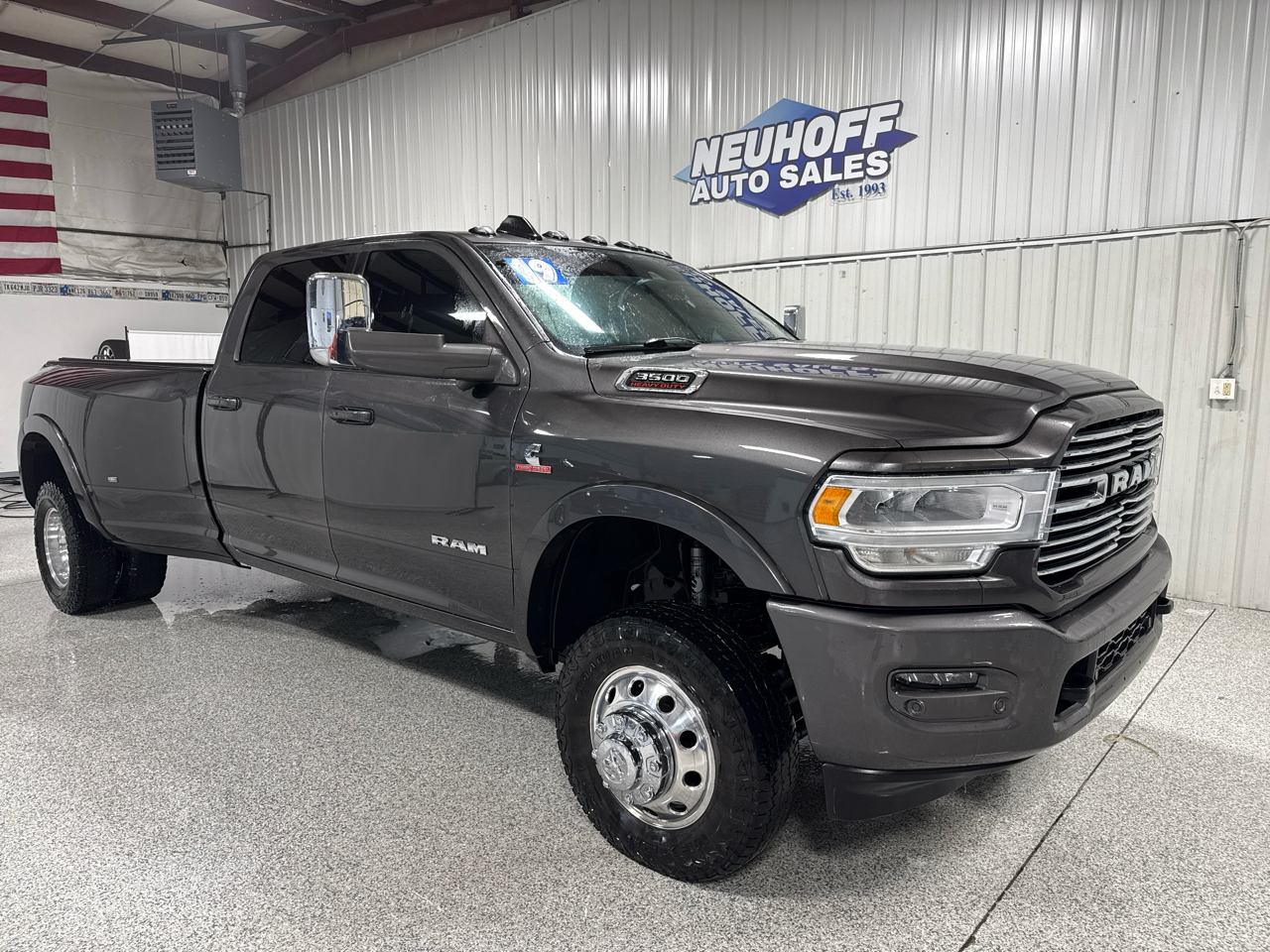 Get ready to be the envy of the road in this sleek and stylish Gray 2019 RAM 3500! This powerhouse of a truck not only turns heads, but it also prioritizes safety with features like child safety door locks and a full array of airbags. Don't worry about unwanted visitors thanks to the vehicle anti-theft system.Cruise down the highway with ease while enjoying the convenience of cruise control, letting you relax and enjoy the ride. The driver and passenger can both bask in the comfort of multi-adjustable power seats, while front heated seats keep you cozy on colder days.